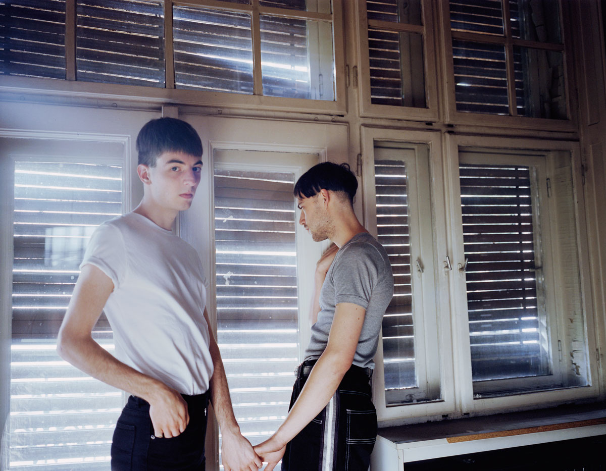 In her classically styled series The Other Side of Venus (2011–2012), Anna Charlotte Schmid portrays queer young men in Budapest whose freedom is severely restricted by state repression. What stands out most are their hairstyles and clothing, which serve as signs of recognition in a society where direct attempts at contact can lead to immediate reprisal. To orchestrate the restlessness, vulnerability, and homelessness of her protagonists, Schmid uses clever lighting and precisely chosen, often transitory places such as corridors and building entrances, or symbolic-seeming backgrounds such as abandoned factories or Venetian blinds closed to the outside.